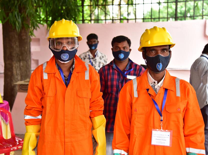 We help professionalize sanitation workers through safety training, job training. We connect them to social sector schemes.